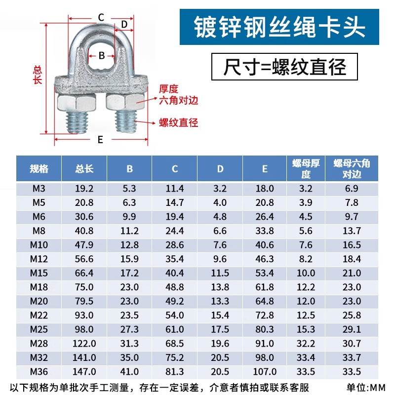 | 型号 | 6mm (适合6mm的钢丝绳) 10个 | 型号 | 8mm (适合8mm的钢丝绳) 5个 |