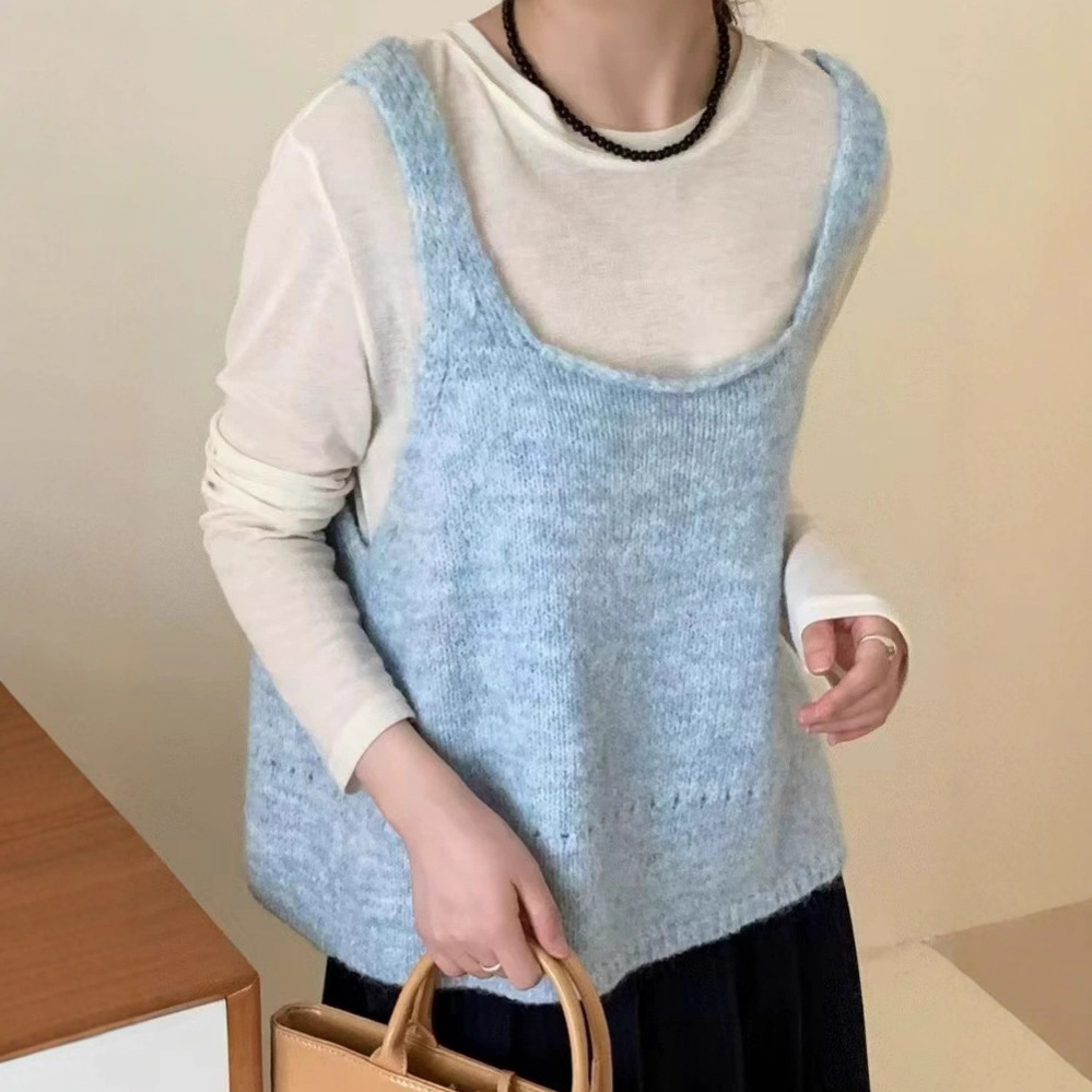 设计感正反两穿针织背心女春秋2025新款短款吊带外搭叠穿毛衣马甲