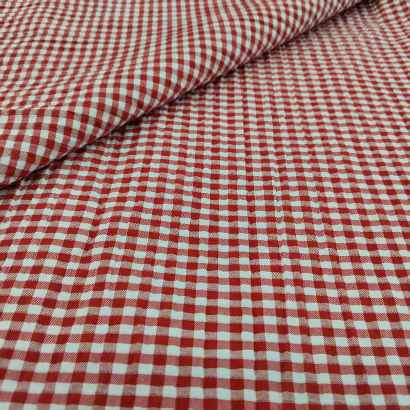 新款全棉色织泡泡格 春夏红色系格纹衬衫面料