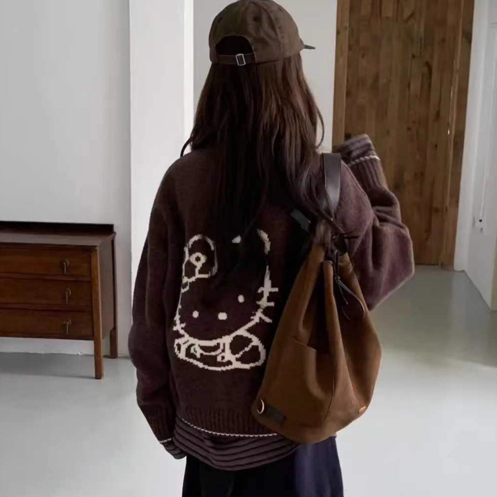 Hello Kitty不规则可爱外套翻领慵懒风2025秋冬款针织衫宽松毛衣