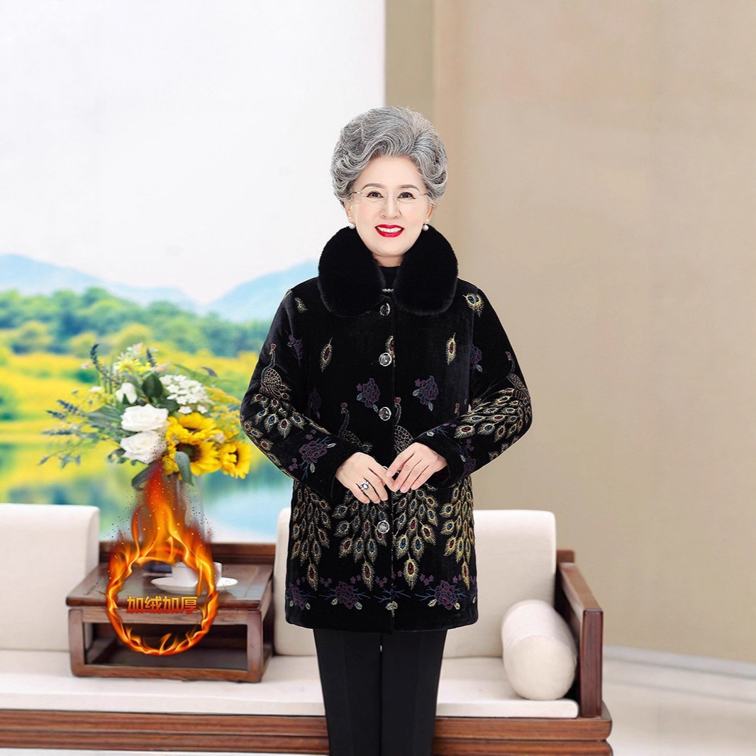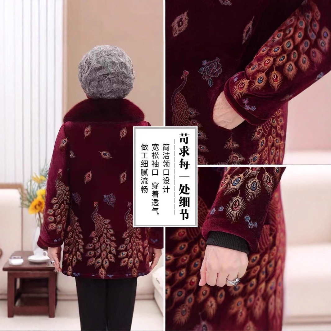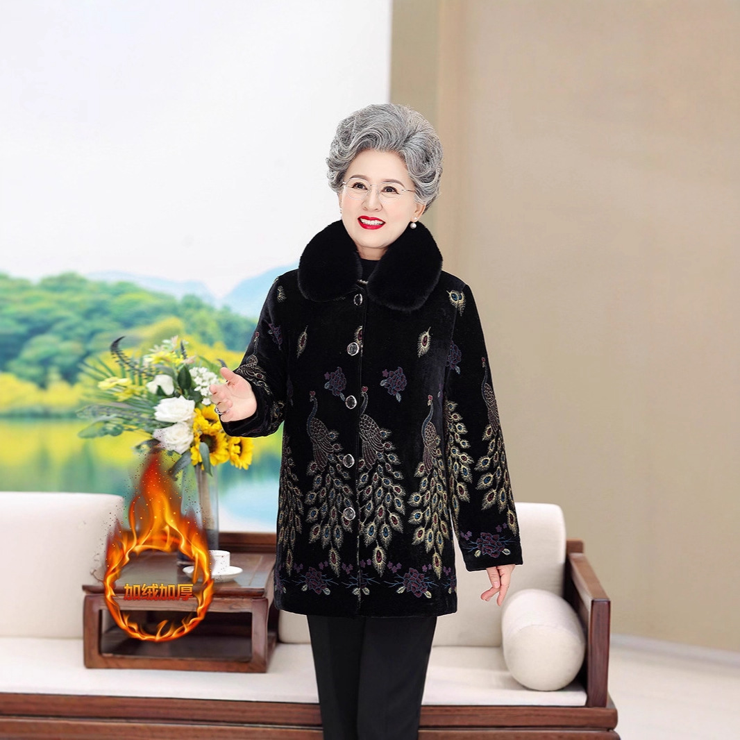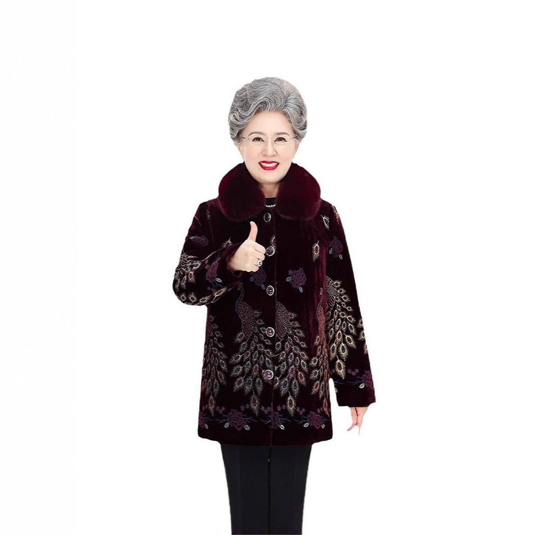 奶奶装秋冬水貂绒外套加绒加厚中老年人保暖棉衣毛领舒适保暖外套