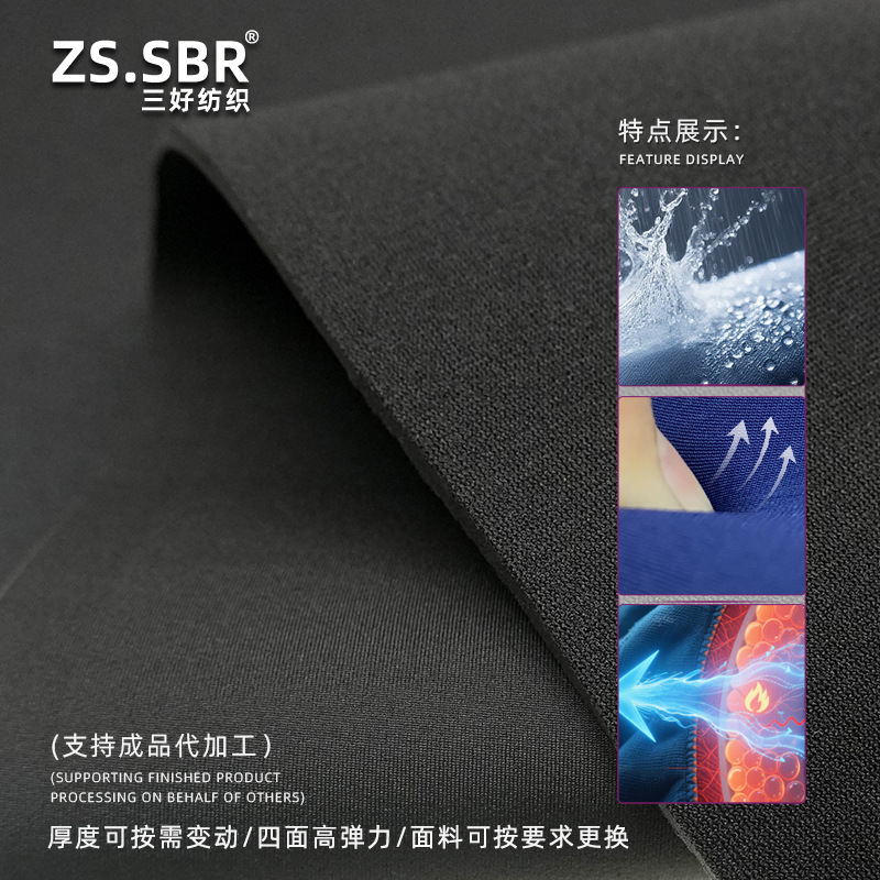 | 货号 | SHG2-2# | 别名 | SBR潜水料,CR橡胶贴合,潜水服氯丁橡胶面料,保暖防水布neoperene,CR橡胶布,橡胶密度高 |