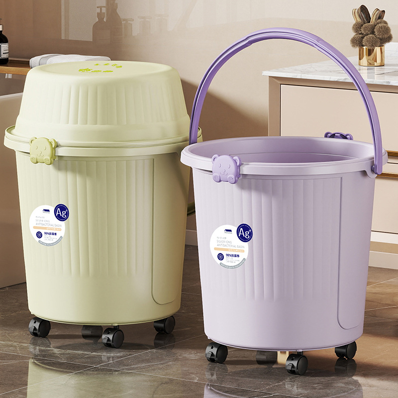 可推移塑料桶盆套装家用水桶手提加厚家用学生盆桶卡扣配套好物