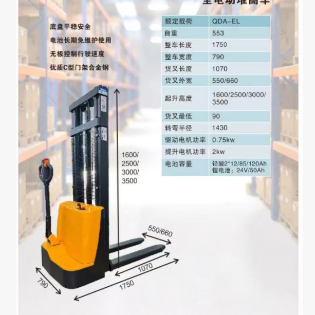 电动堆高车,步行式电动堆高车,电动升降叉车,电动升降车,小型电动叉车,电动升高车,充电叉车,仓储叉车