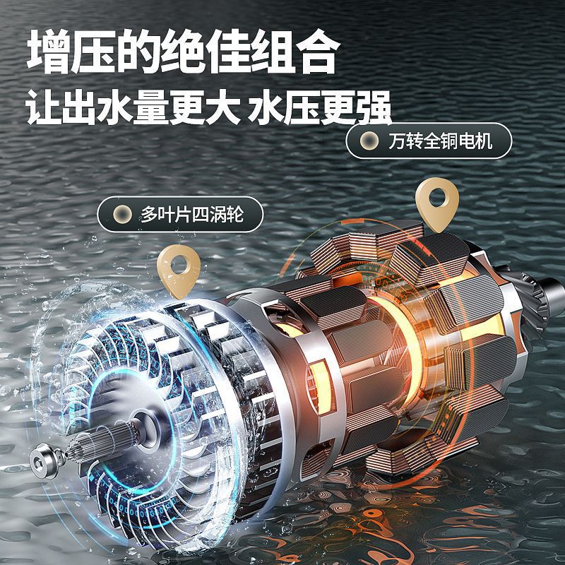 规格 | 【四涡轮螺旋强压高扬程】高层用水依然又大又猛-【智能变频全屋稳定增压】全屋各处都能同时用水 | | 规格 | 【四涡轮螺旋强压高扬程】高层用水依然又大又猛-【1290W旗舰强压款】 静音省电丨感应启停 |
