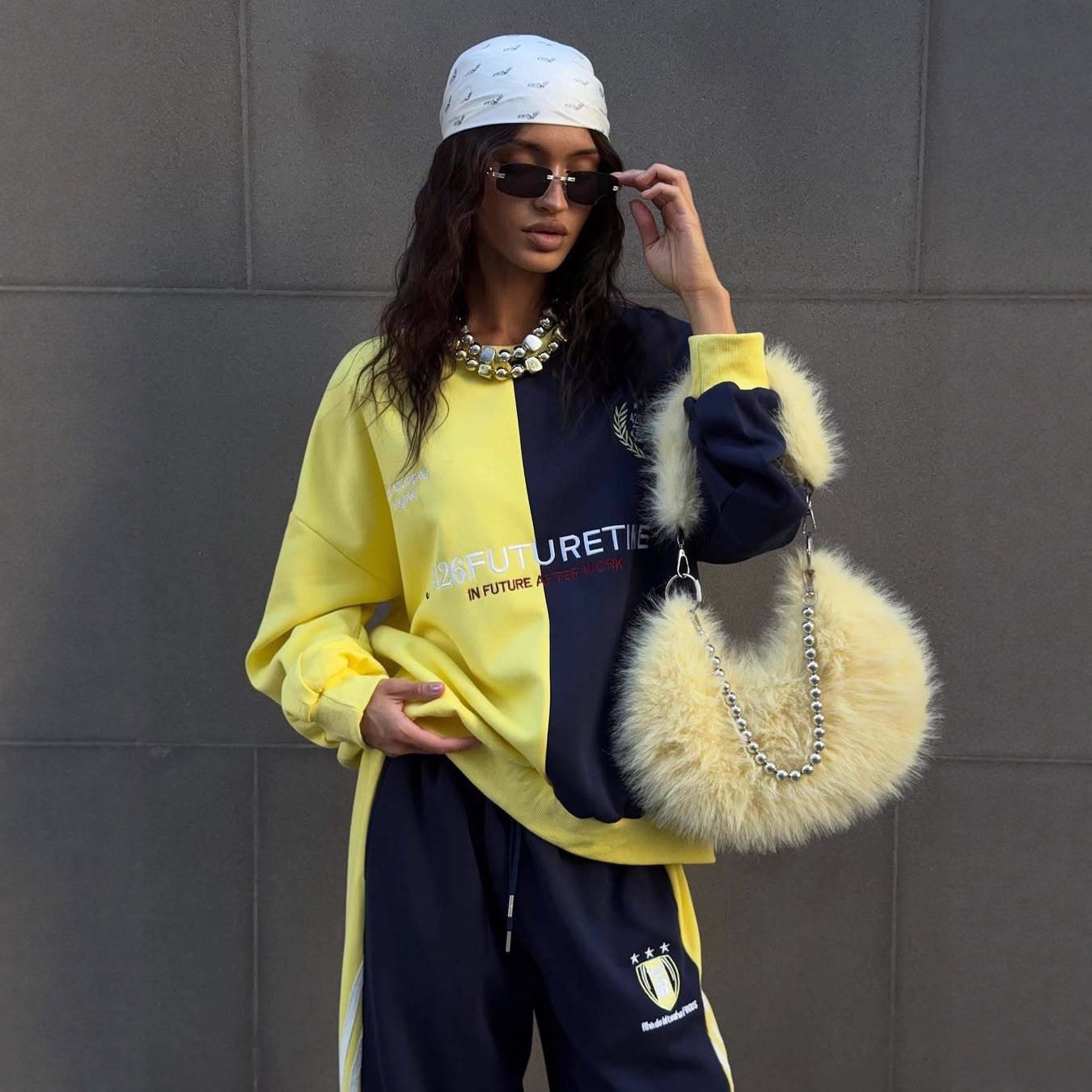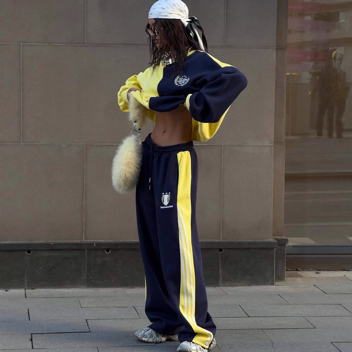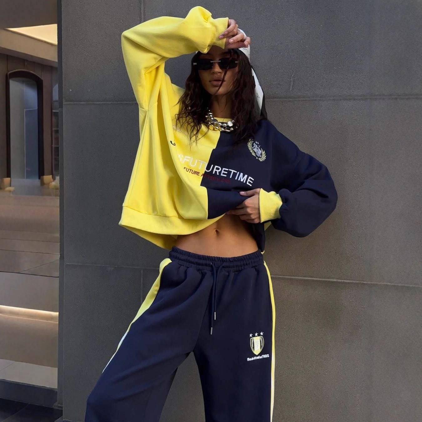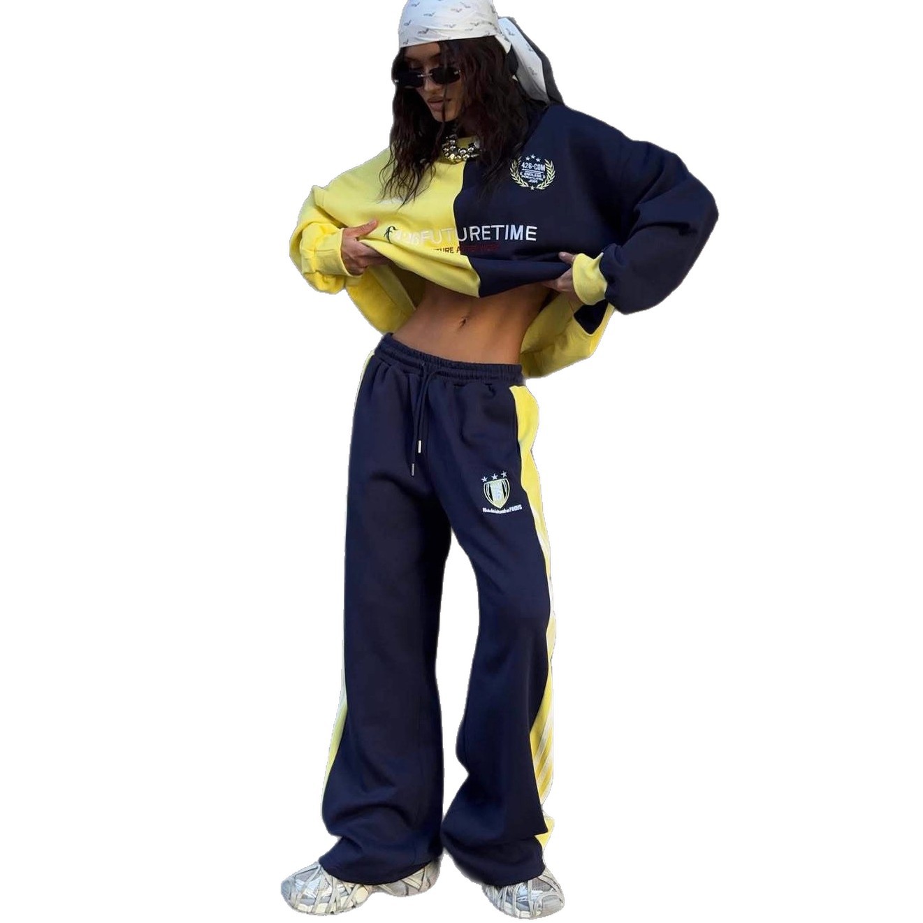设计感休闲时尚套装女2025秋装新款洋气拼接卫衣直筒运动裤两件套