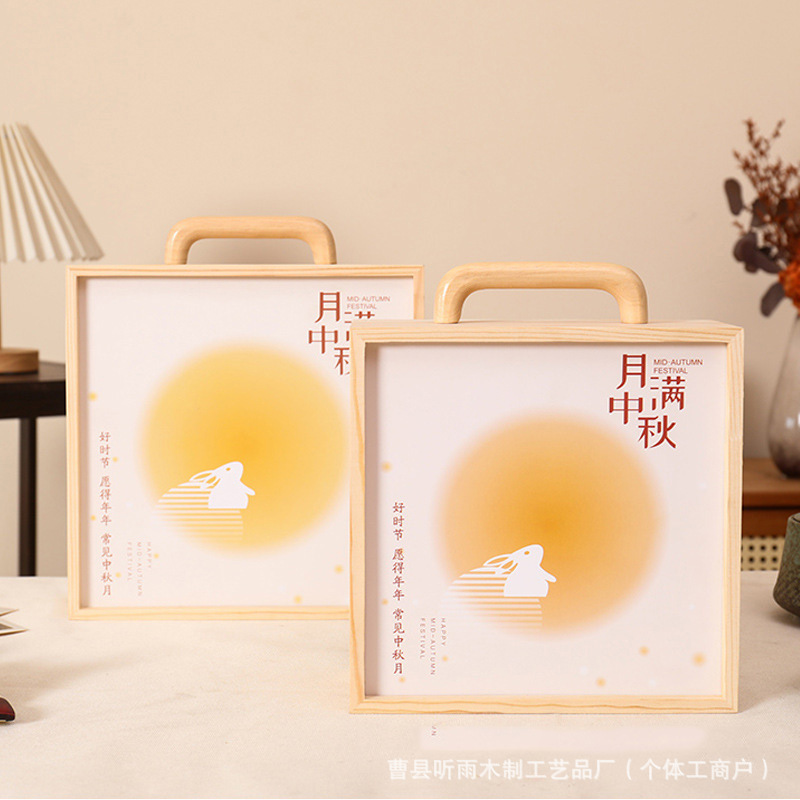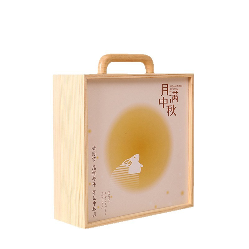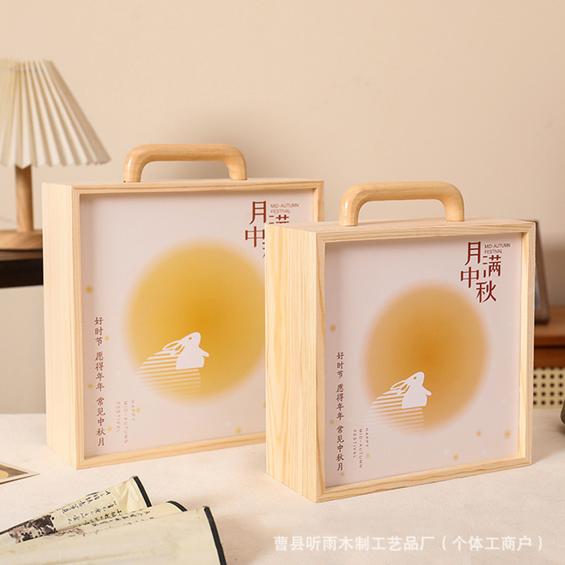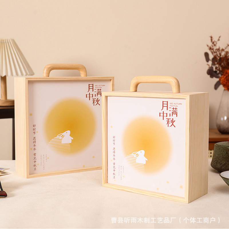 2025新款中秋包装盒木质月饼礼盒实木商务手提抽拉盖礼品收纳木盒
