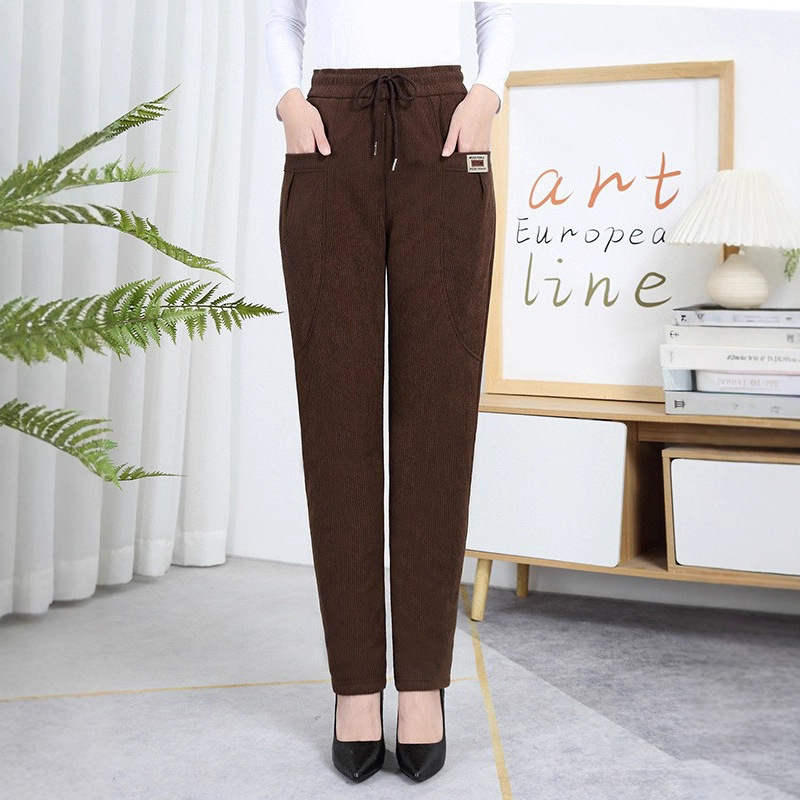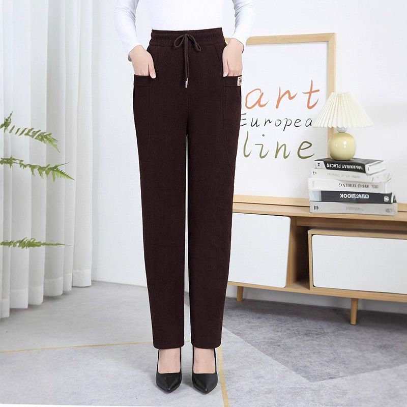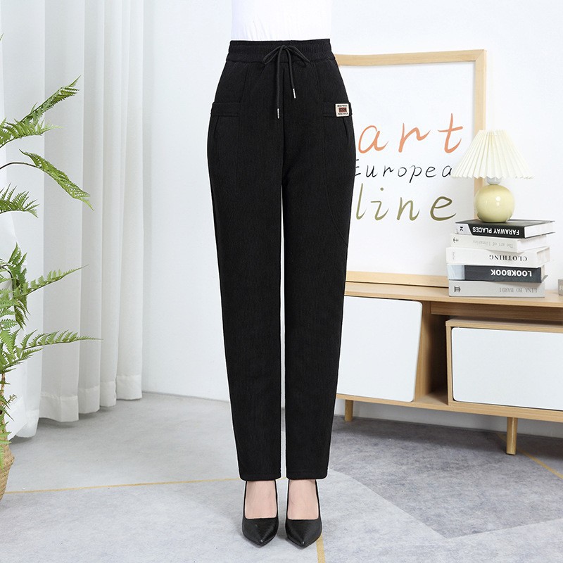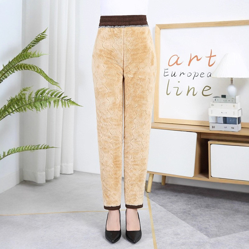 加绒保暖棉裤大码中老年女裤妈妈冬季羊羔绒小脚长裤
