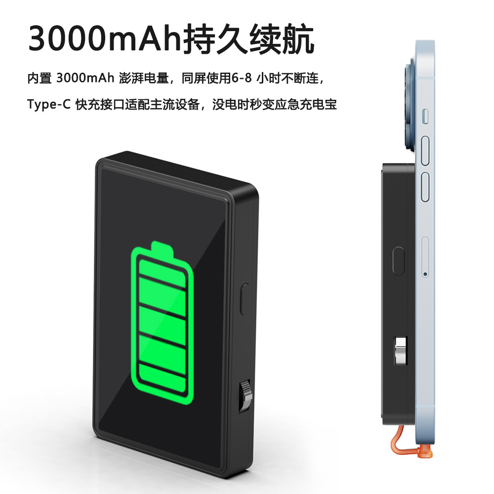 MagSafe磁吸自拍投屏器直播提词应急充电wifi蓝牙无线连接同屏器