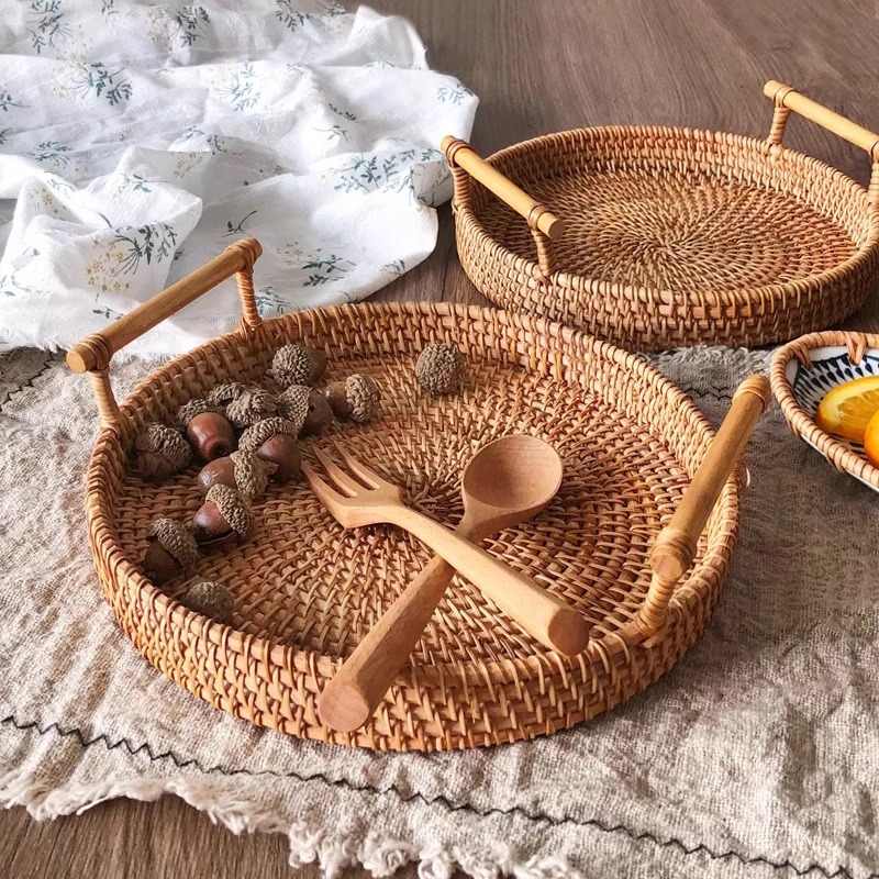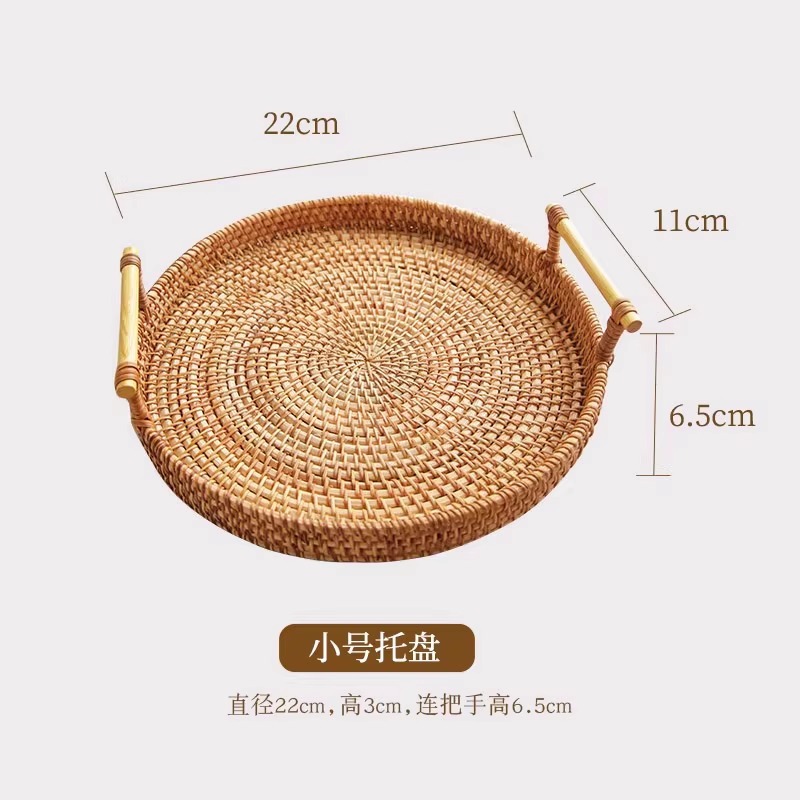 藤编托盘日式水果盘家用轻奢面包篮子馒头筐早餐篮竹编野餐点心篮