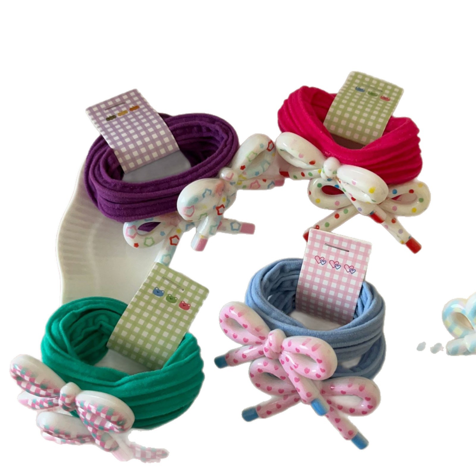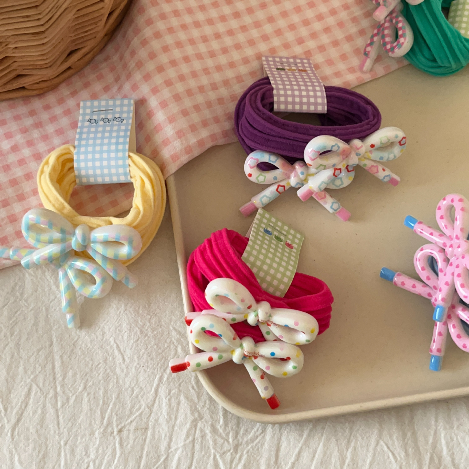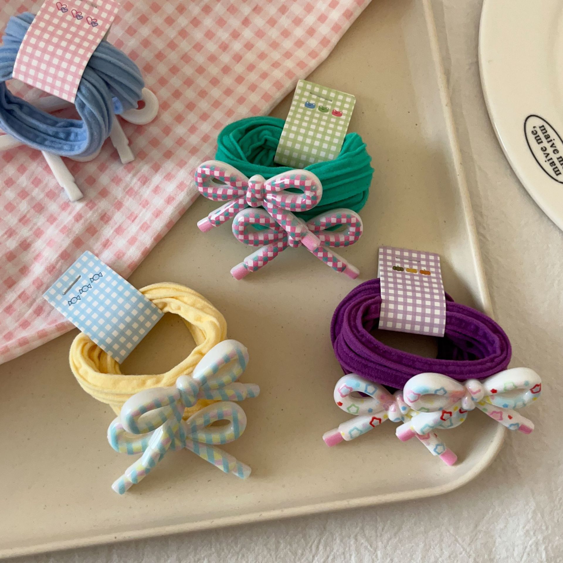 2条装 碎花条纹蝴蝶结毛巾圈发绳可爱少女心双马尾扎发皮筋头绳新