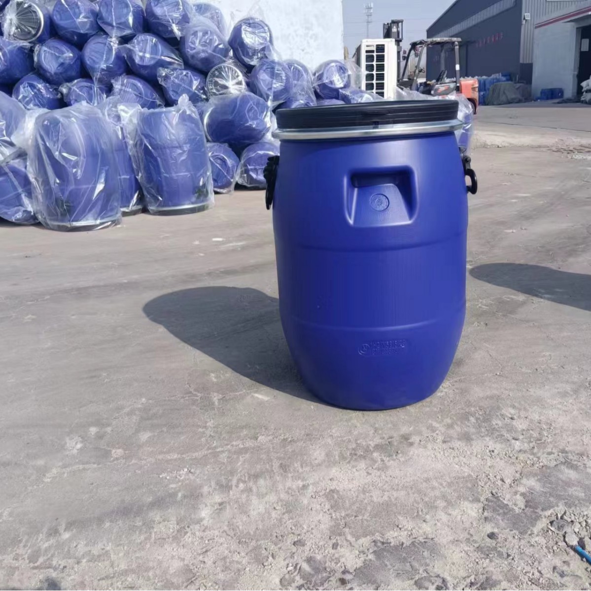 齐华50升大口塑料桶50L抗氧化耐腐法兰桶50kg蓝色加厚配罐