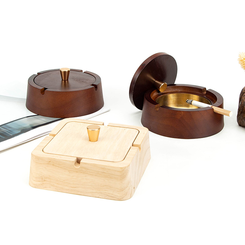 实木烟灰缸中式带盖轻奢商务酒店高端家用防飞灰高级感创意烟灰盅