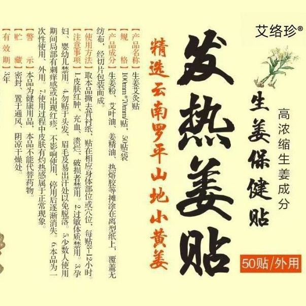 | 型号 | 发热姜贴(20贴/袋),发热姜贴(50贴/袋),发热姜贴(100贴/袋) | 生产企业 | 南阳市艾钰生物科技有限公司 |