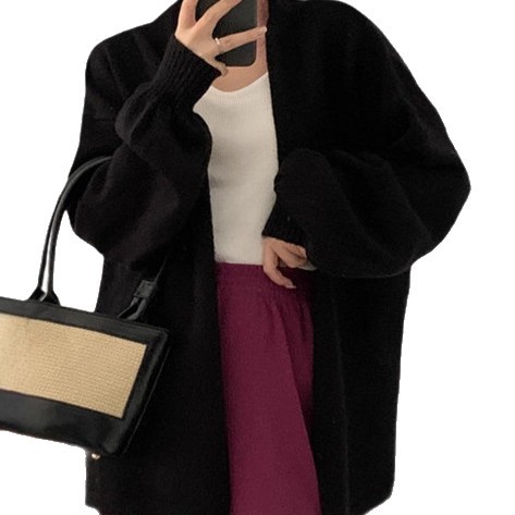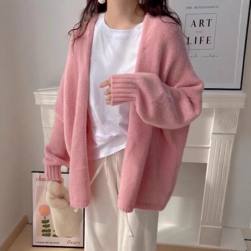秋冬韩版纯色针织开衫复古温柔U领休闲慵懒宽松外穿百搭毛衣外套