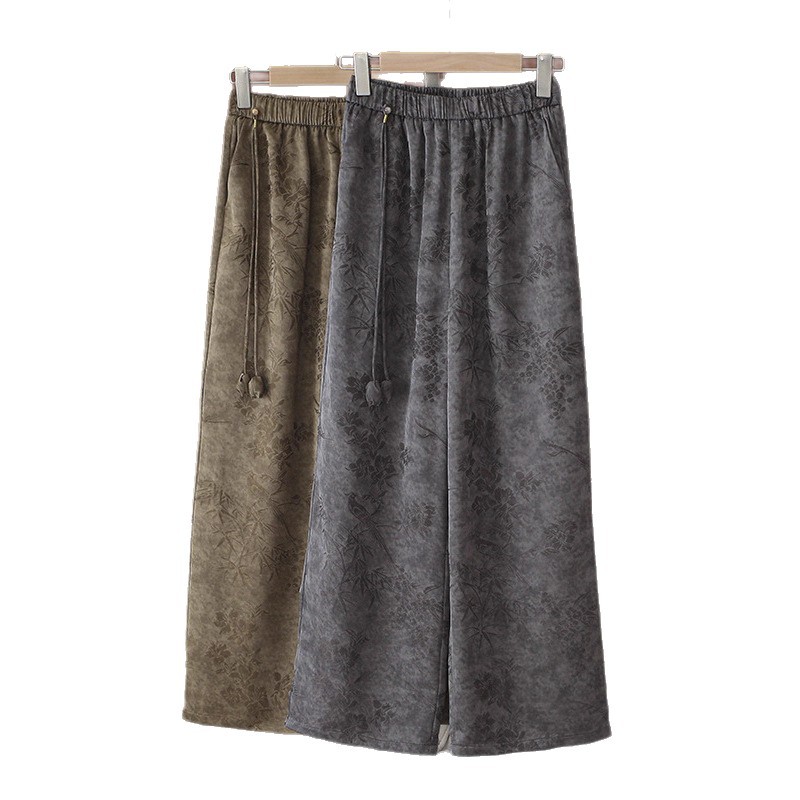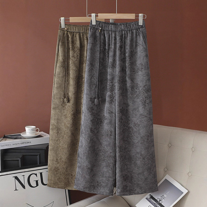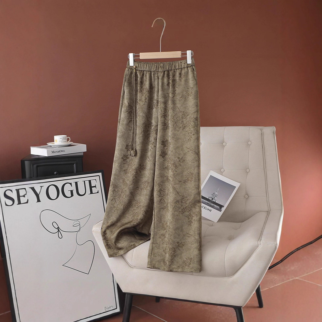 国风夏季提花新中式高腰2025新款垂感妈妈宽松阔腿裤