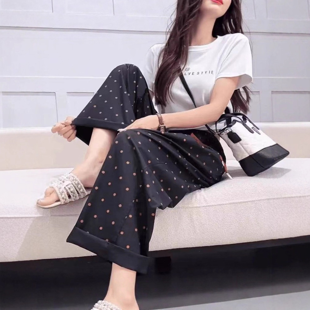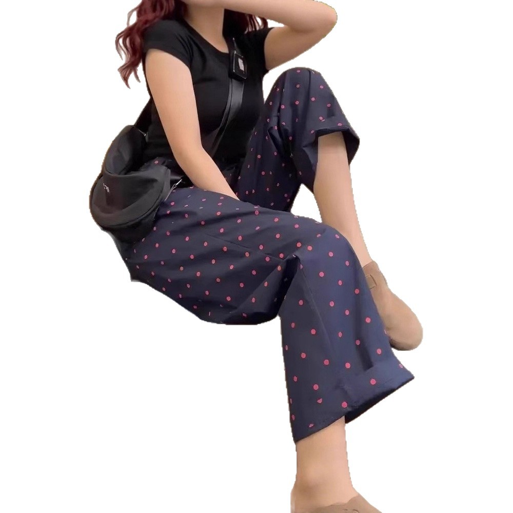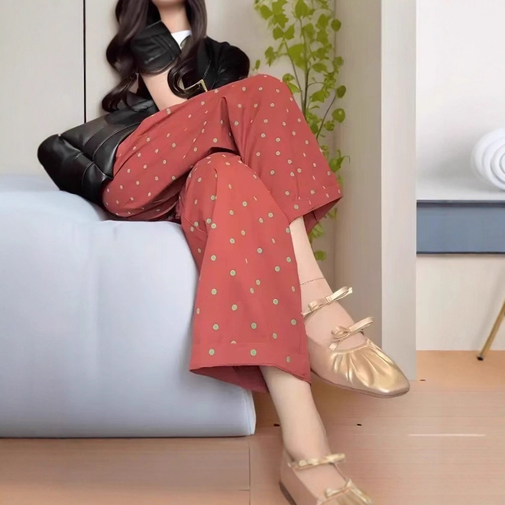 新款高级感系列显瘦版型波点原创设计直筒阔腿裤潮流圆点女款长裤