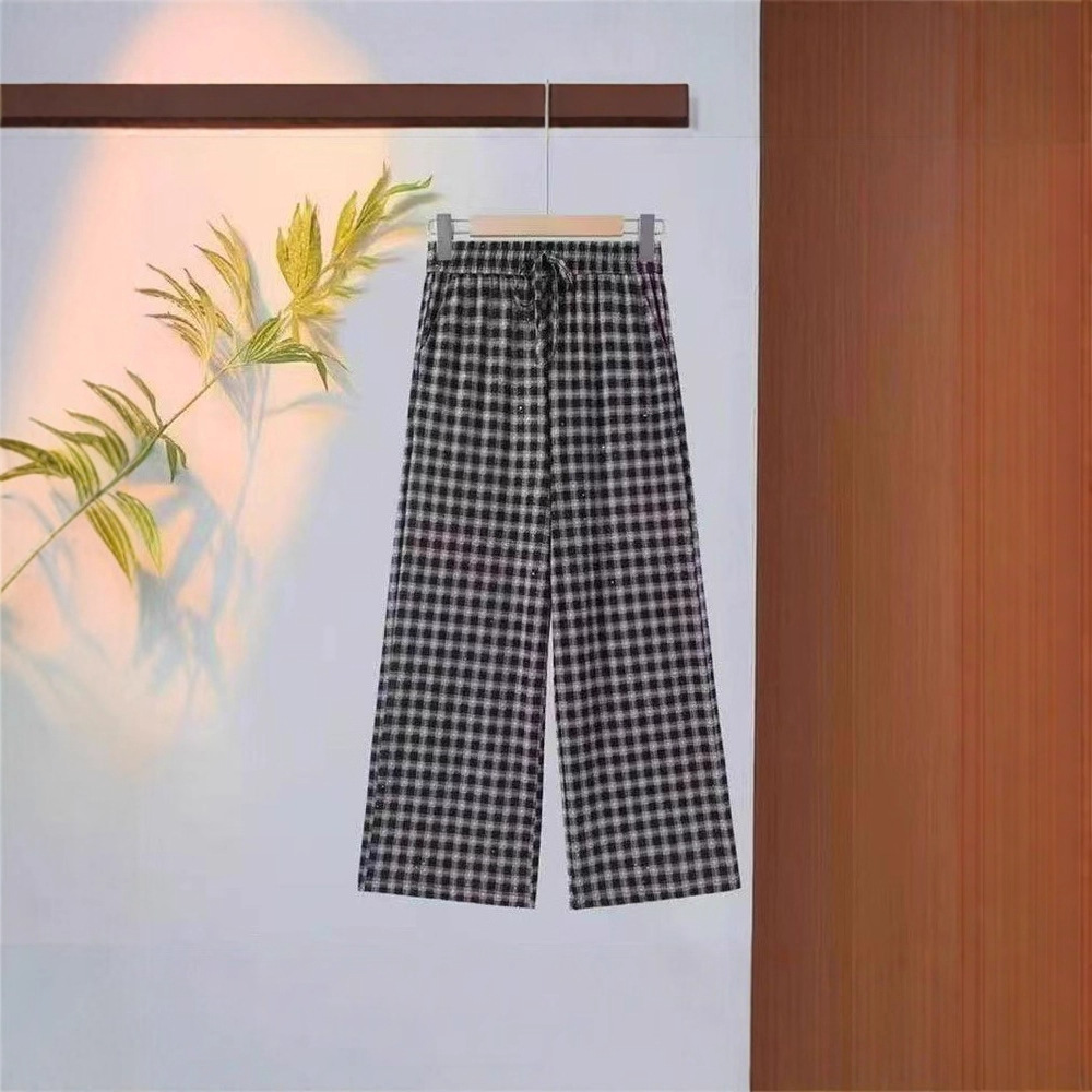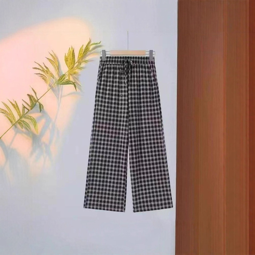 夏季爆款小格子凉凉裤宽松显瘦大码高腰外穿透气遮阳裤休闲裤