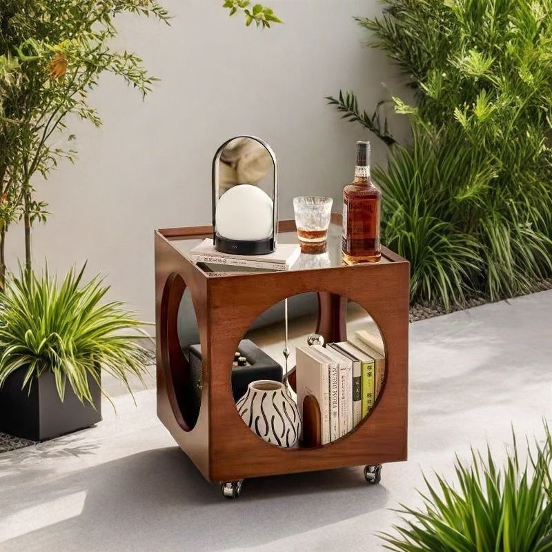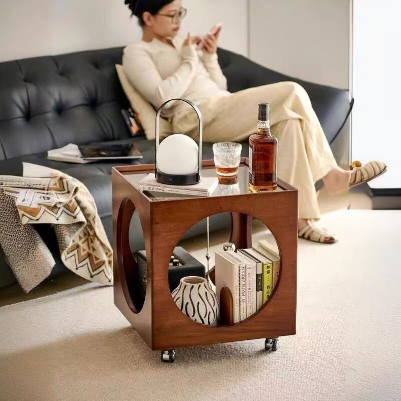 实木移动复古床头柜卧室客厅家用沙发茶几极简床头柜可移动小茶几
