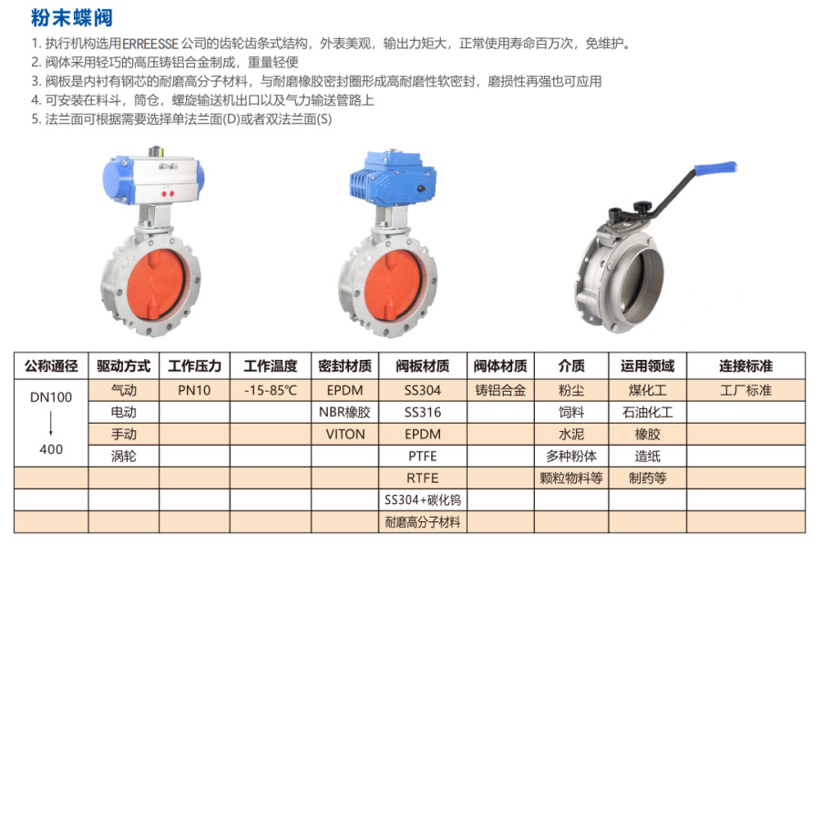 规格粉末蝶阀