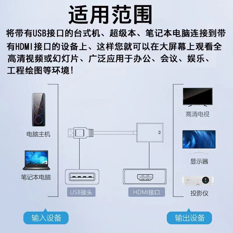 笔记本电脑投影仪HDMI转换线USB转HDMI母转换器高清转接线批发
