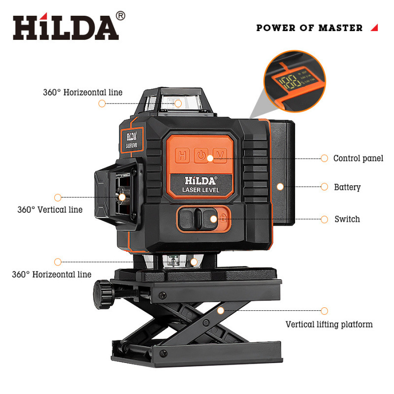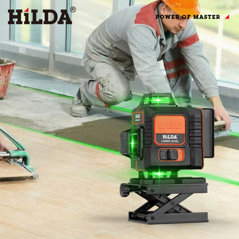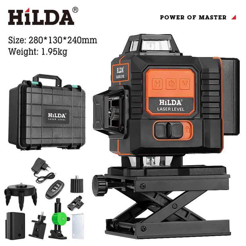 希尔达高精度16线绿光水平仪套装跨境新款自动调平带支架水平仪