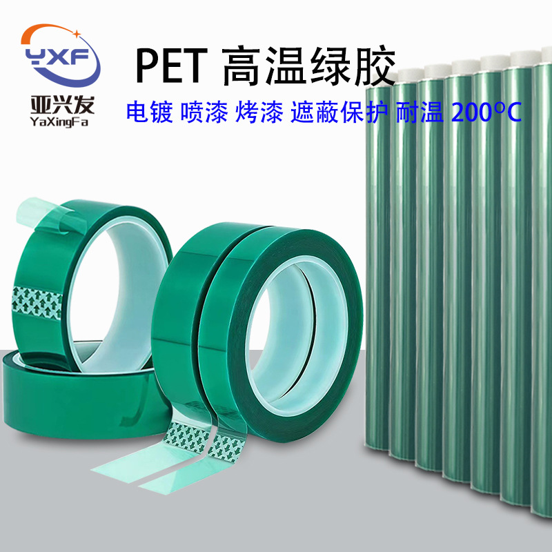 PET绝缘胶带工业耐高温绿胶喷漆遮蔽不残胶耐酸碱硅胶带批发高粘