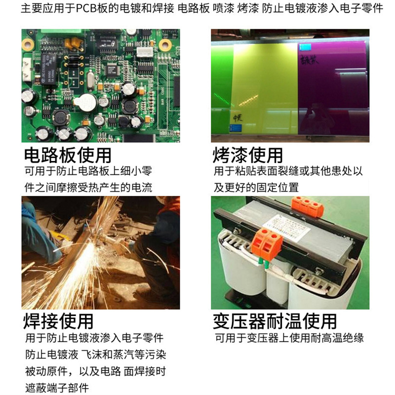 适用范围 | 烤漆/耐热保护/高温遮蔽保护/绝缘包扎 | | 短期耐温性 | 200°C-230°C 瞬间260°C |