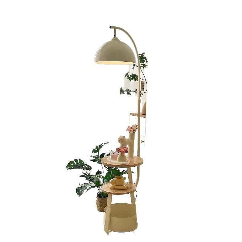 落地灯奶油客厅沙发茶几角落置物架卧室床头柜一体台灯中古立式