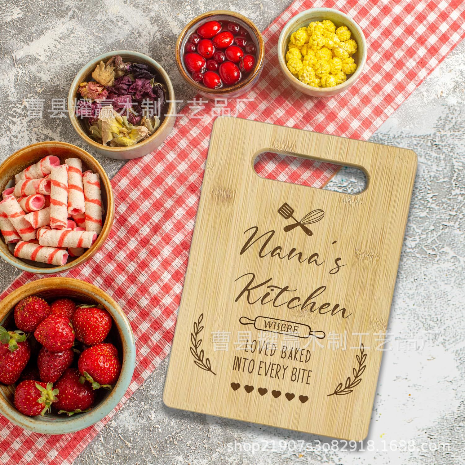 竹制砧板激光雕刻创意实木菜板家用厨房木质切菜食物摆放亚马逊
