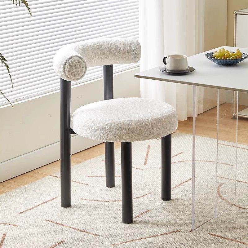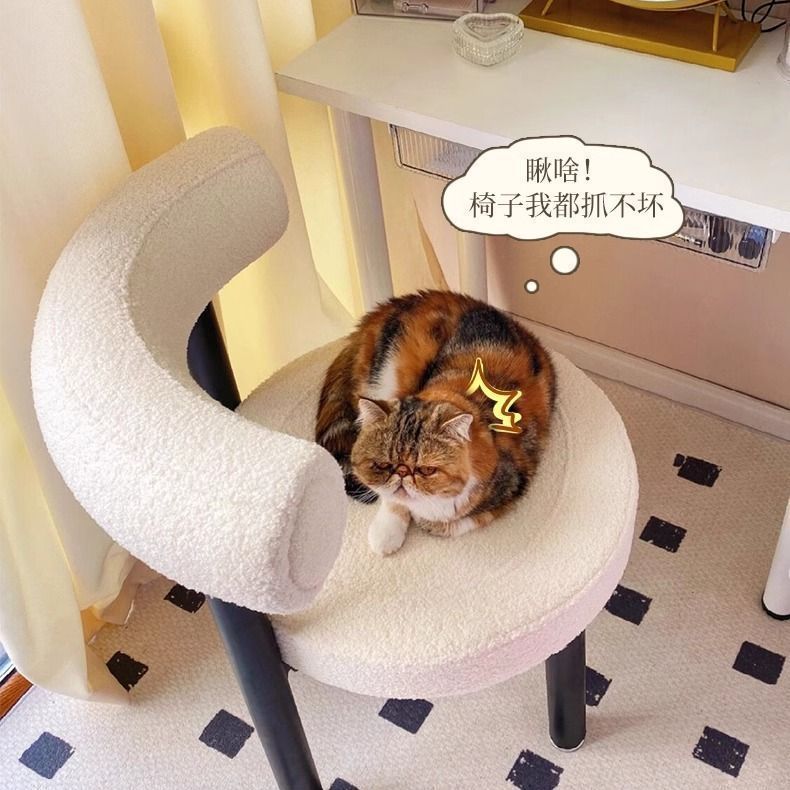 奶油风化妆凳简约卧室羊羔毛梳妆台小胖椅女生轻奢化妆椅网红款