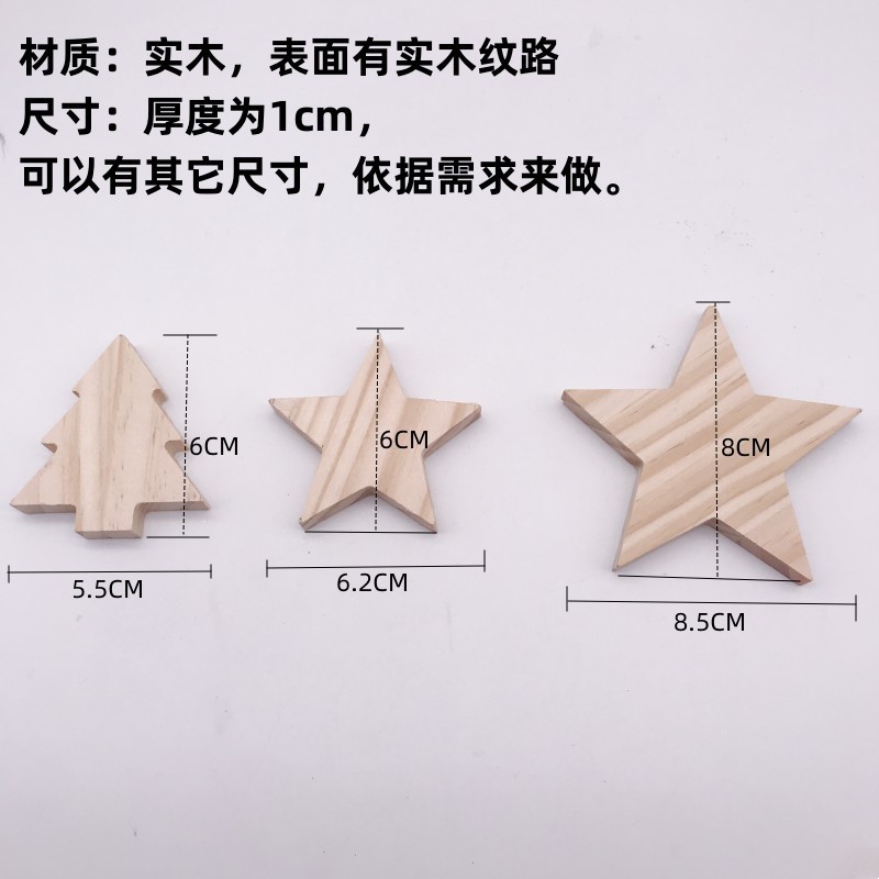颜色 | 实木小星星6.2*6*1cm | | 颜色 | 实木大圣诞树9.5*10*1cm |
