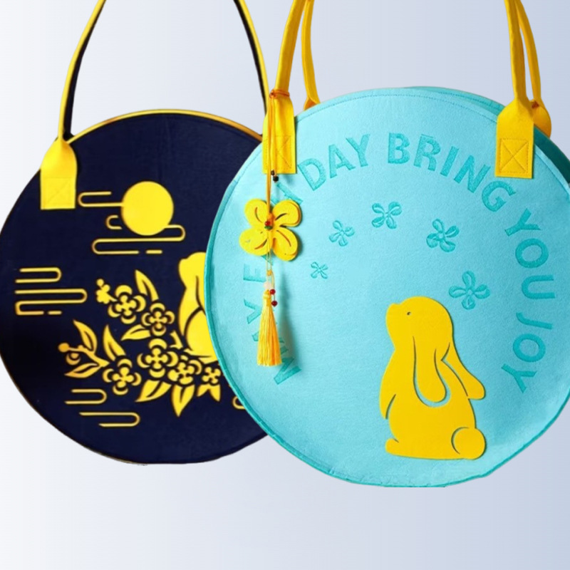 批发中秋兔子毛毡包礼品水桶包便携手提logo毛毡袋伴手礼工厂供应