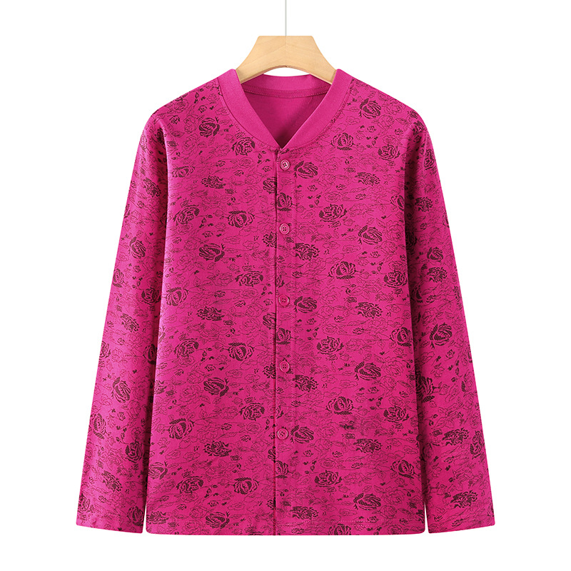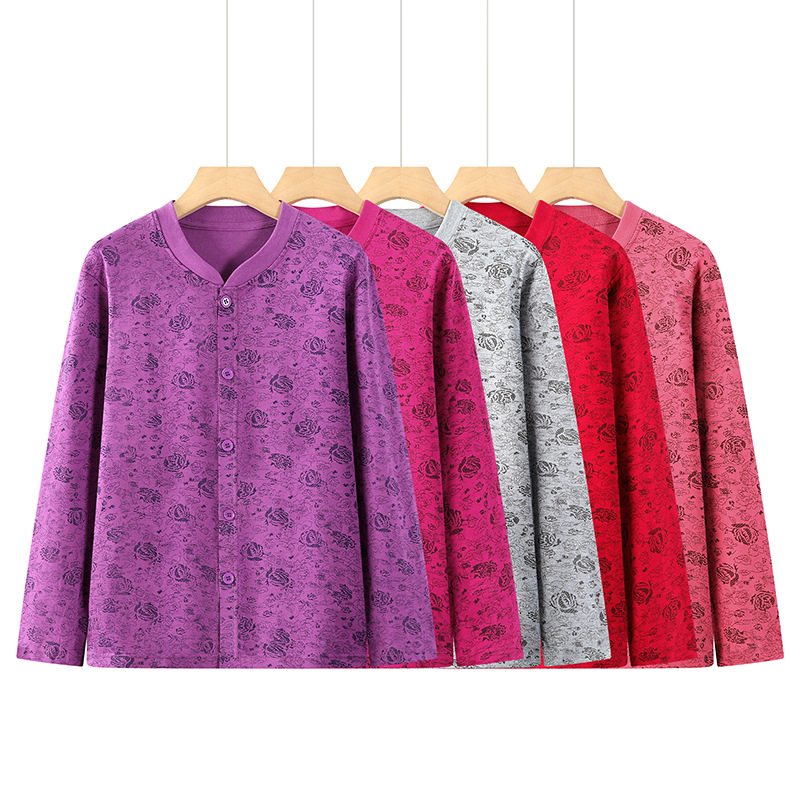 妈妈纯棉开衫秋衣中老年人女对襟线衣全棉老太太开身系扣棉毛衫