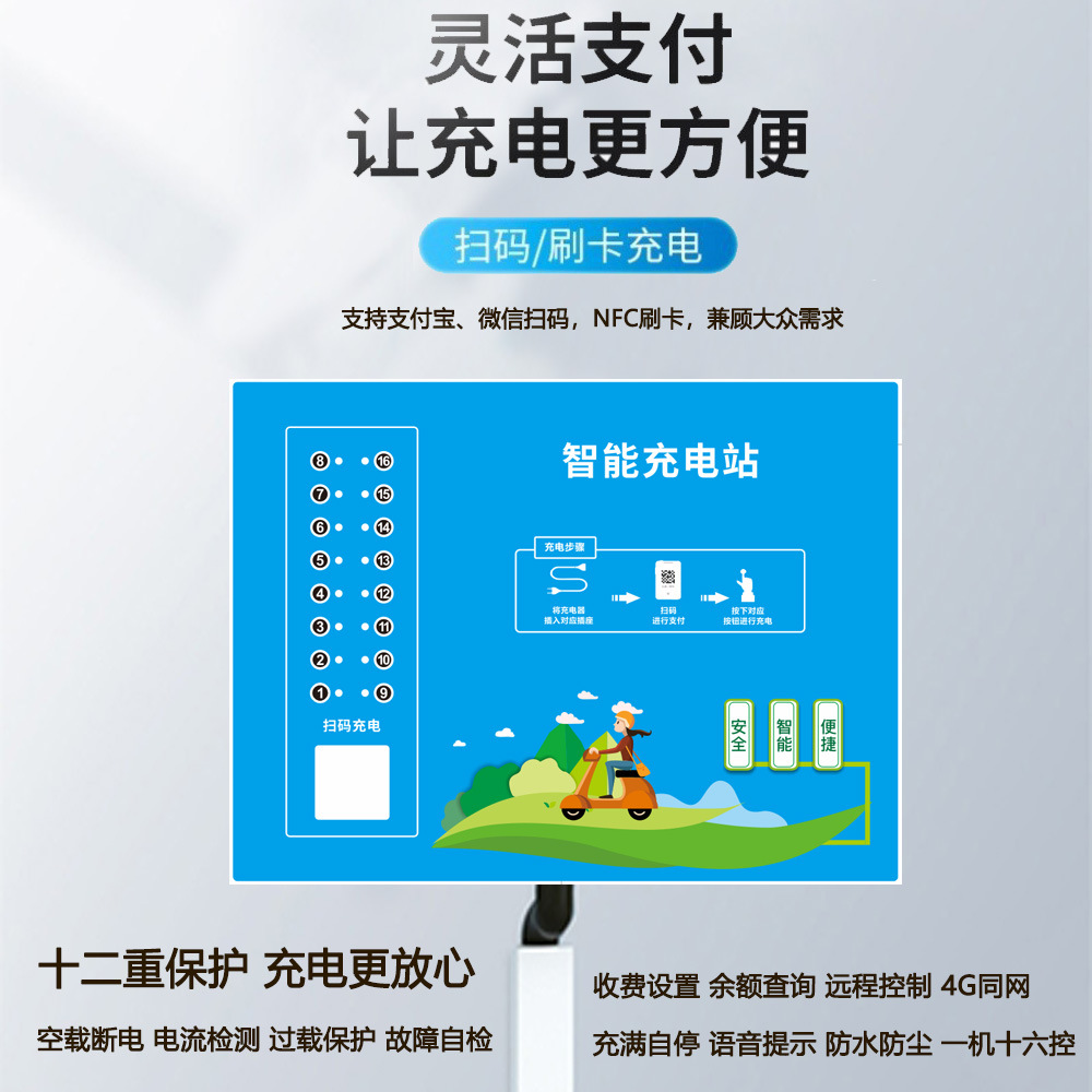 16路两轮电动车刷卡扫码智能户外充电站小区出租房电瓶车充电桩
