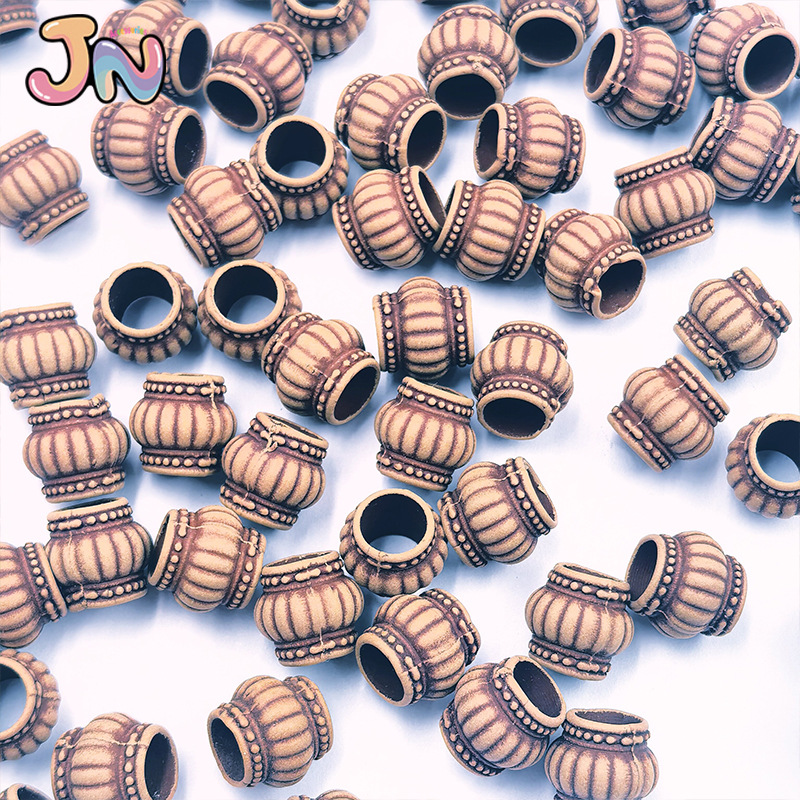 脏辫串珠仿木灯笼珠大孔复古中式风散珠diy饰品发扣亚克力头饰
