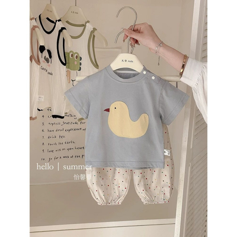 套装夏装2025新款可爱宝宝小鸡短袖洋气裤子婴儿衣服图片色套装