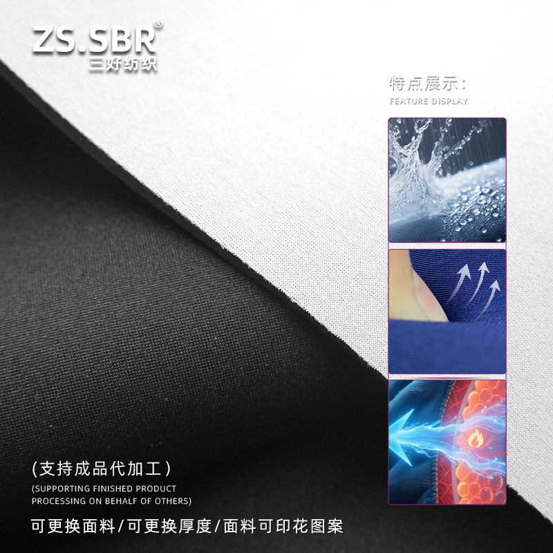 | 货号 | SHG1-13# | 别名 | 黑白色SBR潜水料,数码升华高温印花氯丁橡胶,午餐包面料,酒瓶套橡胶布料,丁苯橡胶面料 |