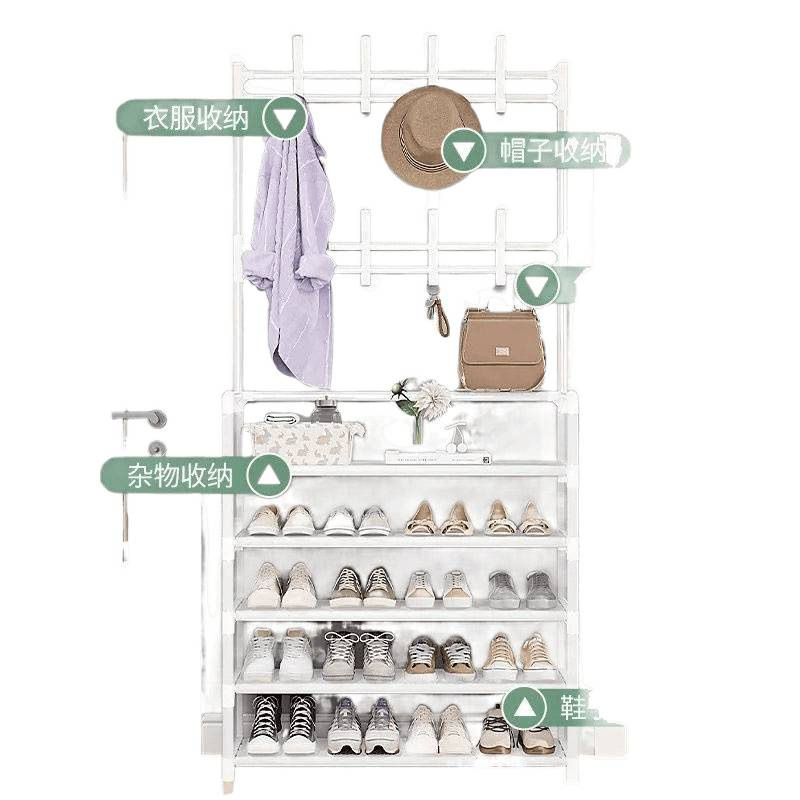 简易鞋架多层一体收纳柜家用宿舍门口鞋柜多功能落地挂衣架鞋帽架