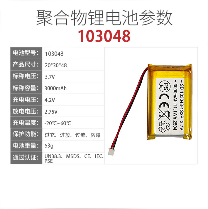 103048聚合物锂电池3000mah激光笔录音笔玩具数码通讯器材电池