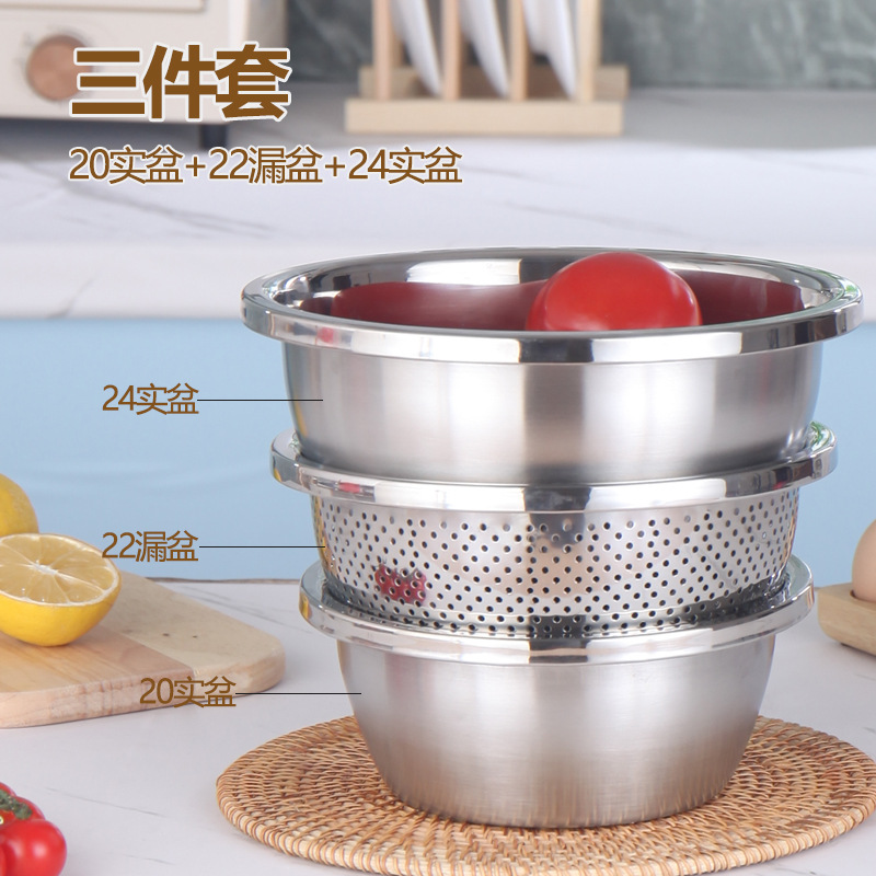 锈钢洗菜盆 沥水篮家用 和面盆厨房淘米洗菜洗水果神器加厚大号