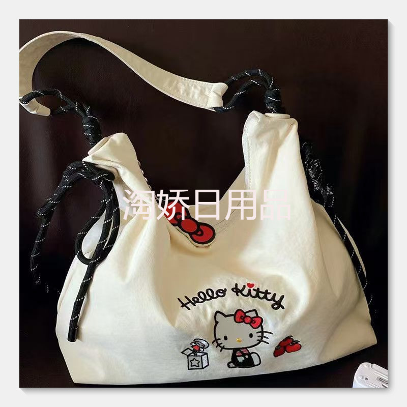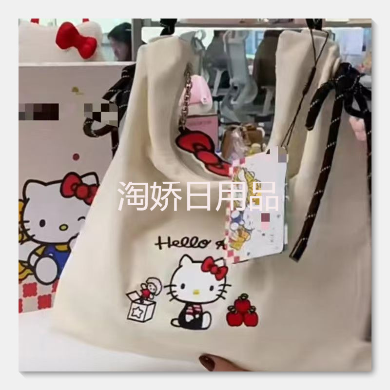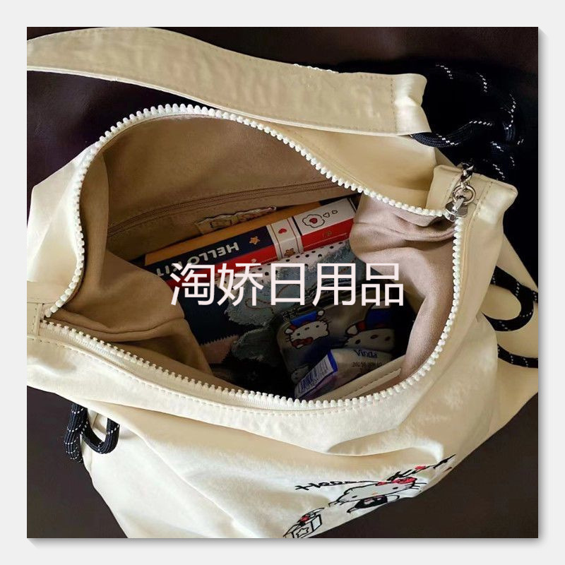 可爱卡通刺绣帆布包女2025新款大容量通勤托特包单肩斜挎包