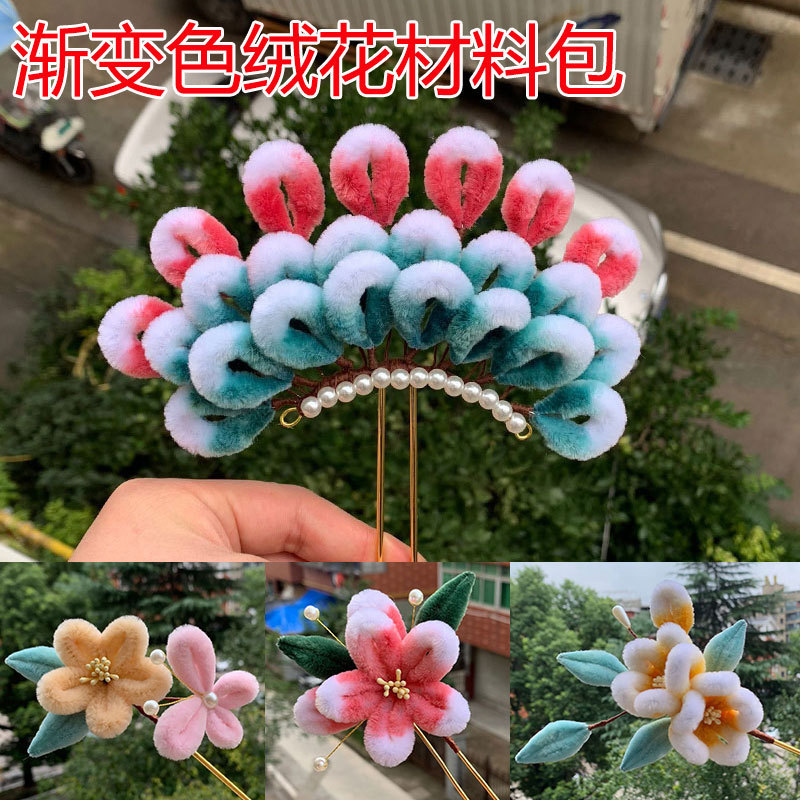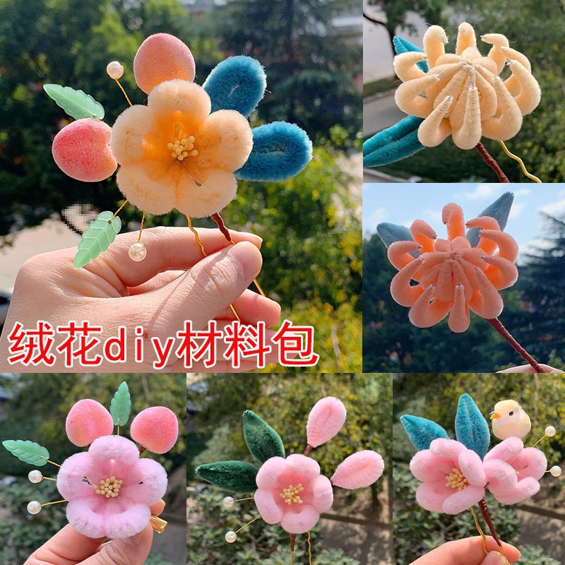 绒花材料包手工古风汉服仿绒花发饰发簪子钗发梳发钗饰垒德株