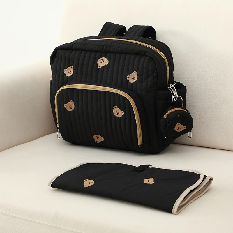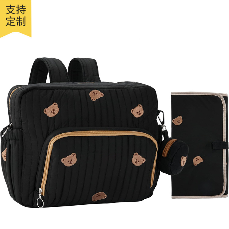 韩国绣线小熊妈咪包时尚刺绣花朵手提包大容量母婴外出遛娃旅行包