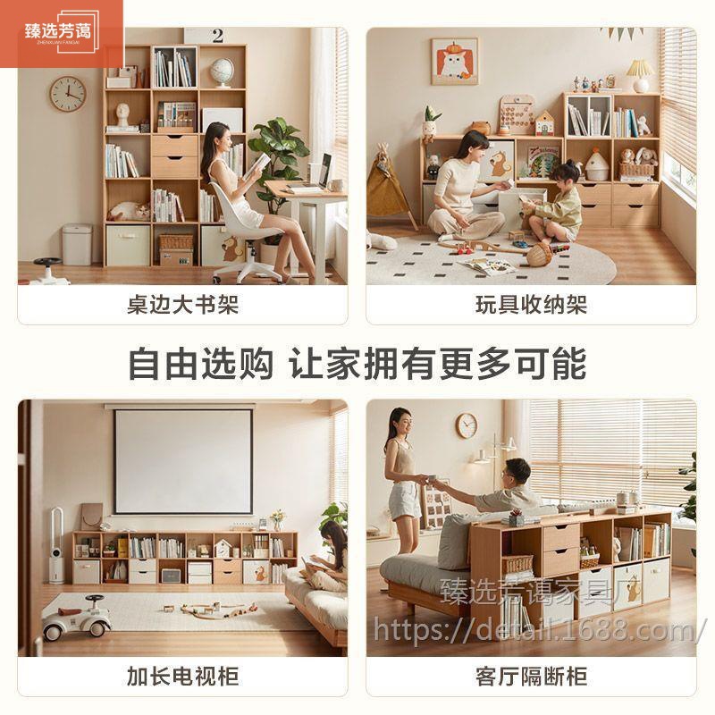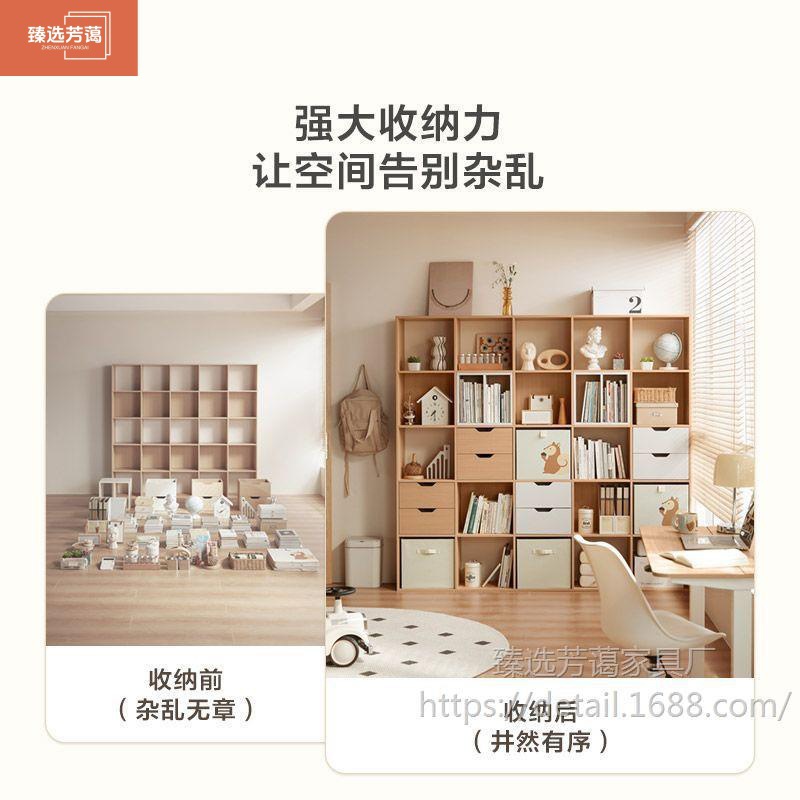 臻选芳蔼绘本收纳柜北欧防尘置物架自由组合格子柜书架客厅书柜