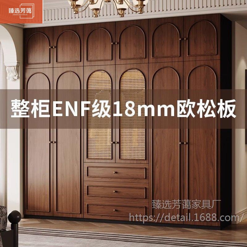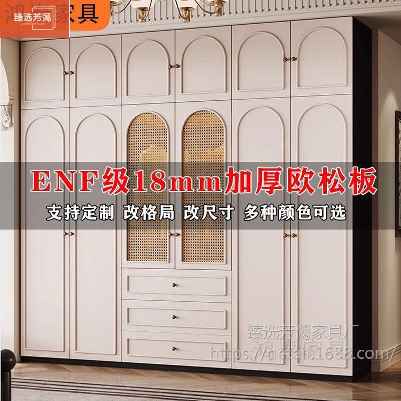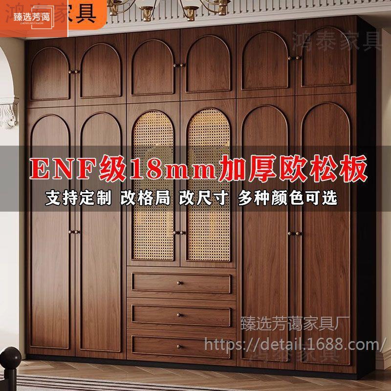 臻选田园中古风ENF级欧松板衣柜卧室家用藤编门法式复古风大衣橱