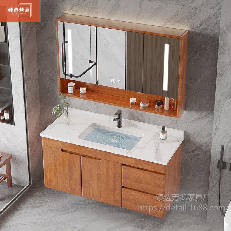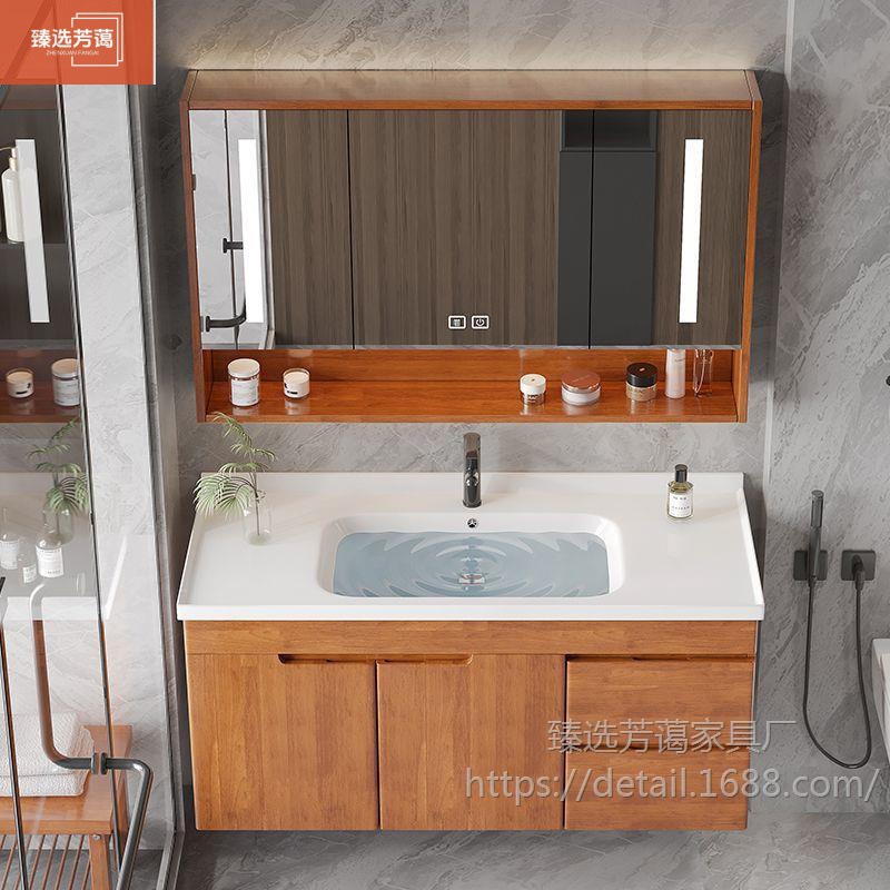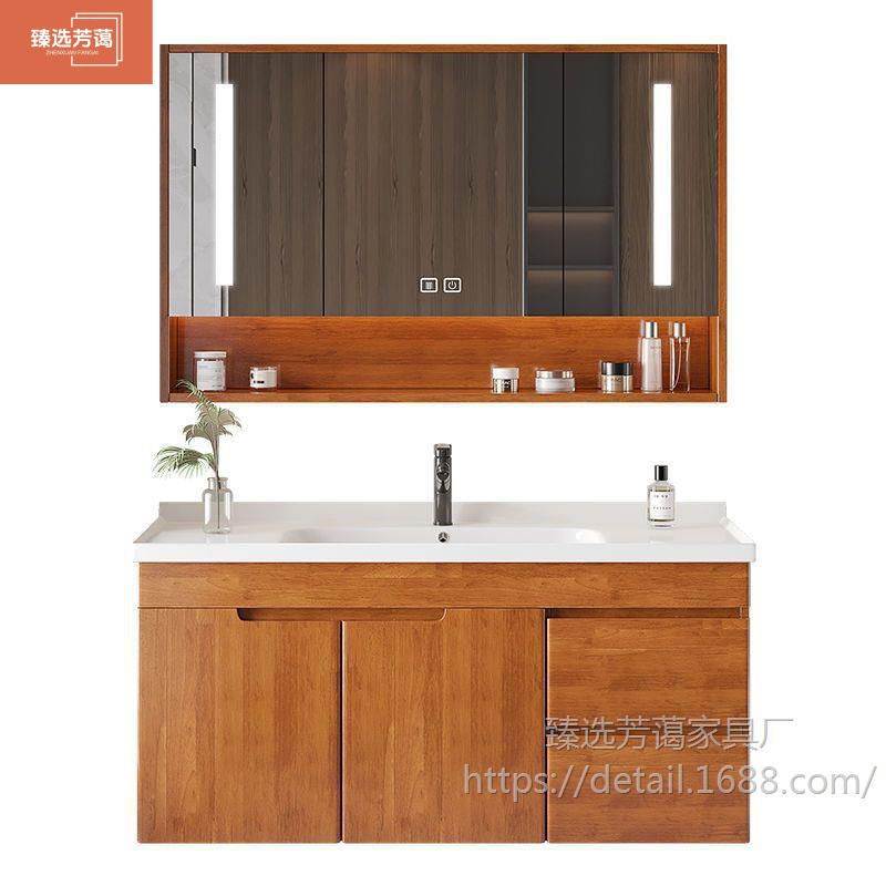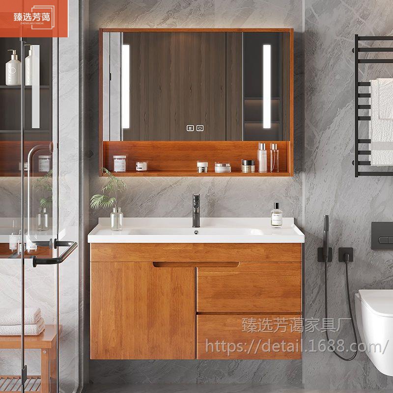 橡木烤漆浴室柜臻选原木色陶瓷一体盆卫生间洗漱台洗手洗脸盆柜