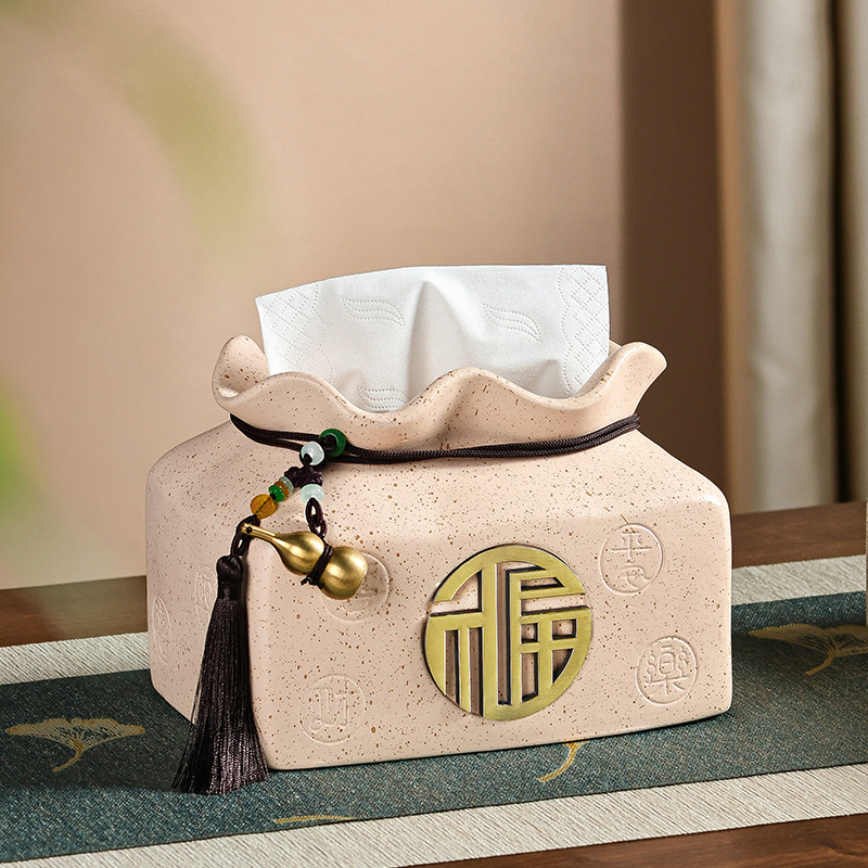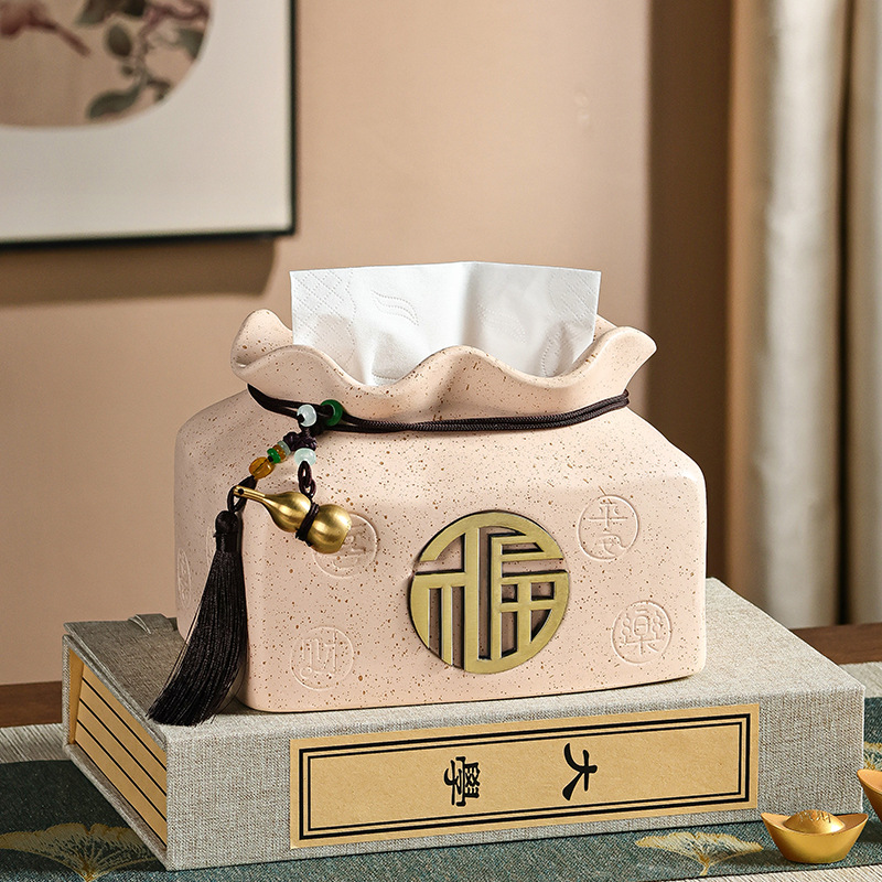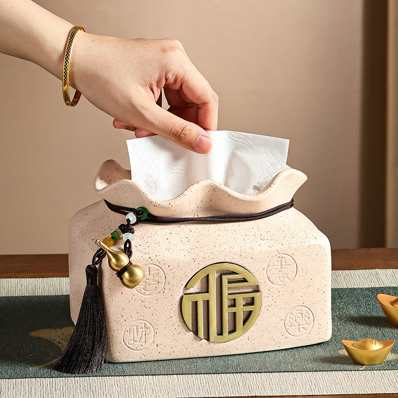 福袋创意新中式陶瓷摆件轻奢高级感客厅茶几抽纸盒餐巾纸盒纸巾盒