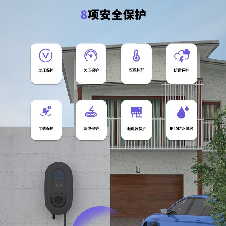 新能源汽车便携充电器欧标充电枪带APP蓝牙7kw家用交流充电桩挂壁