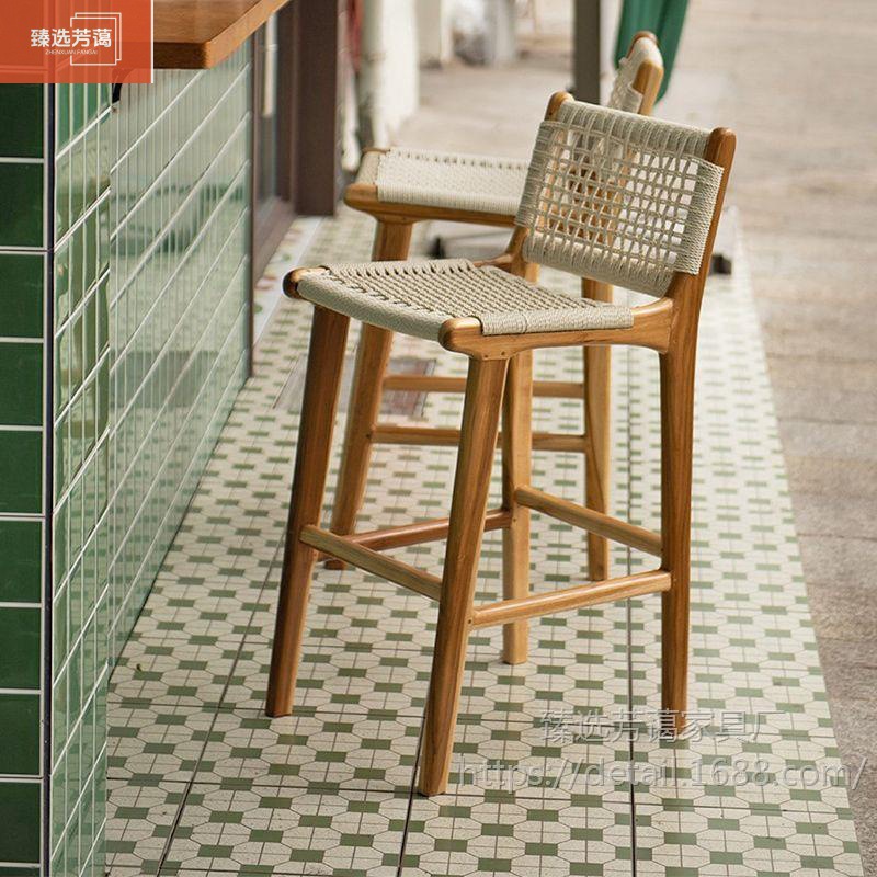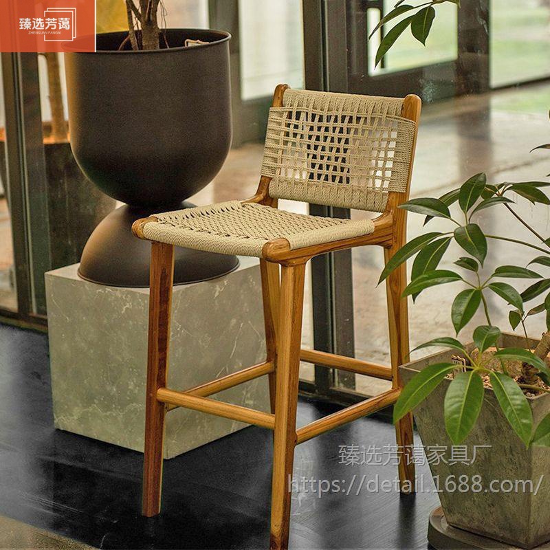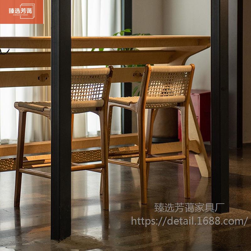 臻选高脚实木吧椅藤编装饰民宿酒吧高脚凳子家用吧台卡座座椅